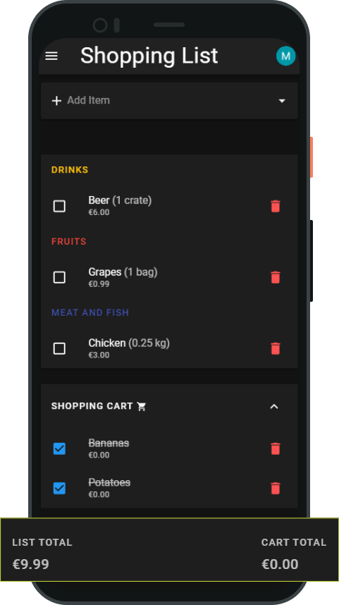 Easily track the cost of your shopping list items so you don't go above budget.